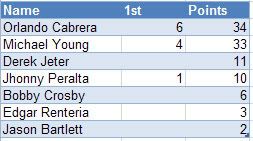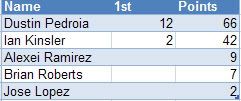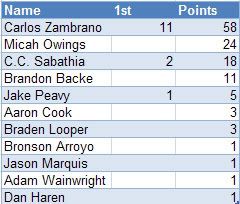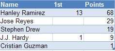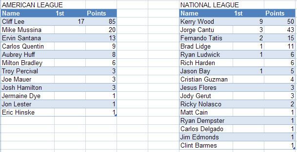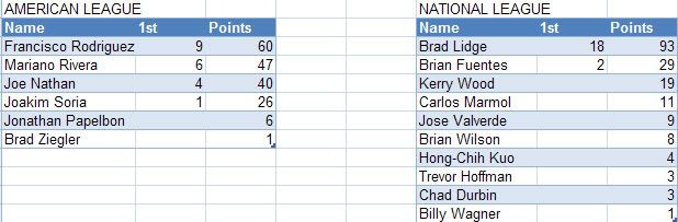 Listed below are the full voting results for each individual award. Shown are the number of 1st place votes that each player received, as well as the total number of points the player received as per the voting rules.