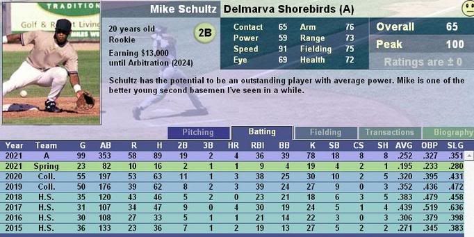 Editor's Note On Trade Fairness: Another team that's out of it, but Beville is signed for another two years after 2023 and their current 3B just isn't up to par, hitting .184 on the season. I also feel that Schultz' peak makes him a bit overrated. He should become a very good player, but I see him settling into the 88-92 range even with him developing normally.