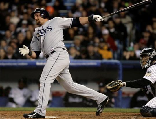 Replacing Gomes, Eric Hinske hit a homer in his first at-bat this season.