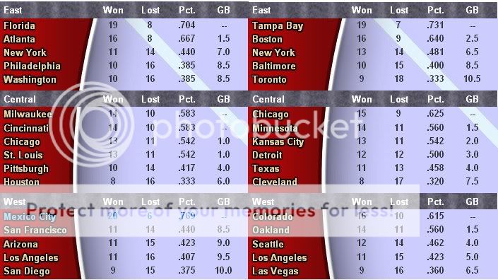 Wait, the White Sox are in first place? WTF? You said we couldn't draft from them!!!I also think I got screwed by playing in a tougher division.