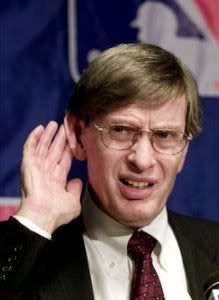 I mean, yeah, this is wishful thinking. I'm not seriously thinking it might happen, but a boy can dream, can't he? We'd all probably have more agreement over the fact that Selig is a dingbat who led a coup against the last legitimate Commissioner of Baseball, Fay Vincent, and who has mismanaged and bumbled his way through the job ever since.