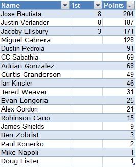 2011 Sports Mogul MLB Awards - Full Voting Results