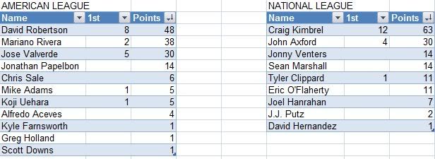 Listed below are the full voting results for each individual award. Shown are the number of 1st place votes that each player received, as well as the total number of points the player received as per the voting rules.